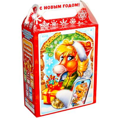 Самая красочная и экономичная упаковка из картона наполнена отборными сладостями для самых маленьких сладкоежек.