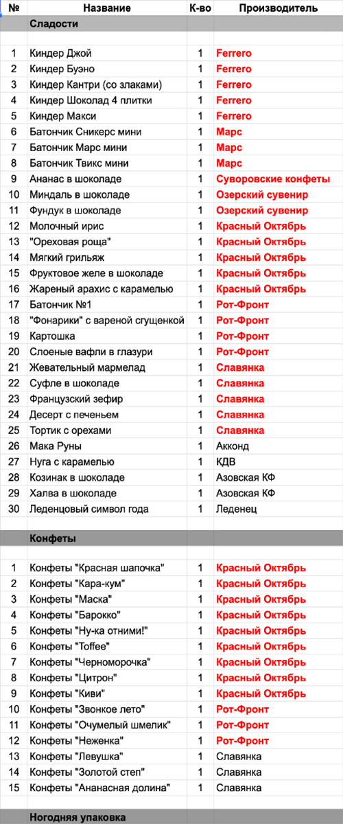 1. Проверить, можно ли внести изменения в состав подарка. Если нет, то скорее всего наборы были собраны еще летом из конфет, произведенных еще раньше